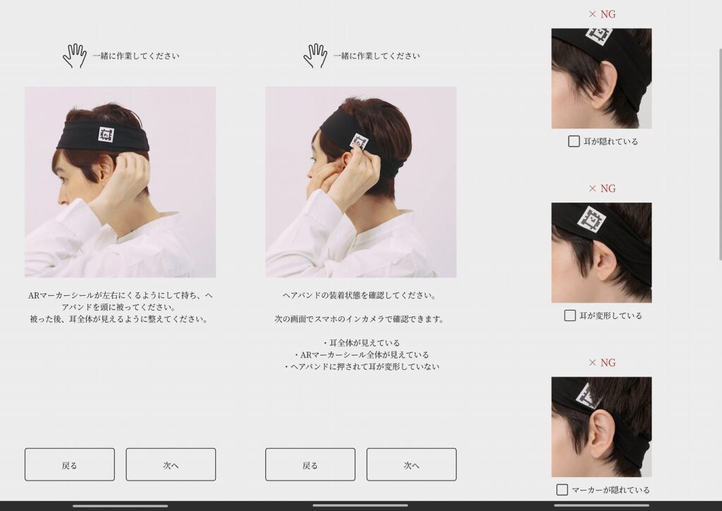 [アプリ上でサンプル写真と共に進めていく。NGチェック付きなのでわかりやすい]